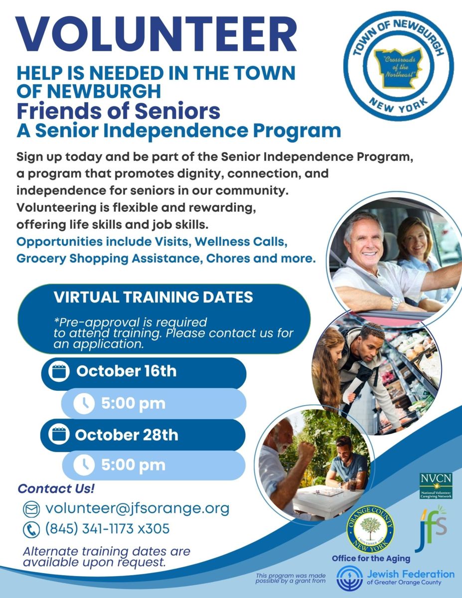 News & Announcements Back to Article List VOLUNTEERS NEEDED FOR THE TOWN OF NEWBURGH FRIENDS OF SENIORS PROGRAM Release Date: October 03, 2025 View Printable News Story